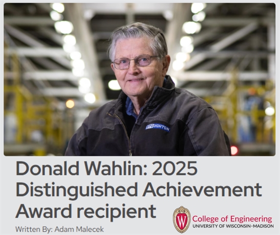 The founder of Stoughton Trailers, Donald Wahlin, has been recognized with the 2025 Distinguished Achievement Award by the University of Wisconsin–Madison College of Engineering.